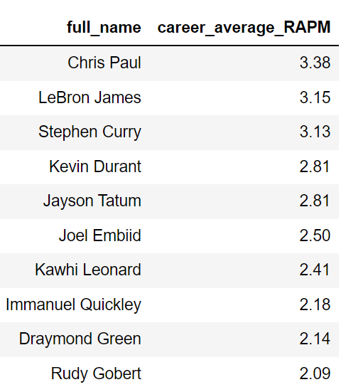 From The Midrange Theory I learned what some of the foremost NBA front office player valuation stats are and how they are computed - I’ll give a brief overview of regularized adjusted plus-minus (RAPM) and then use it as the main yardstick with which to evaluate NBA players.
