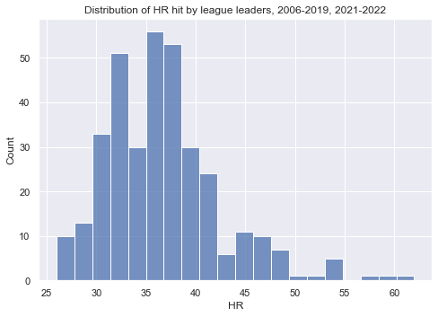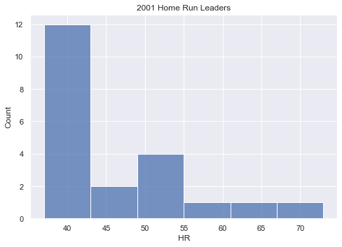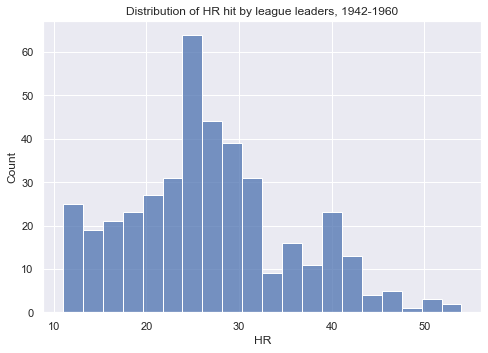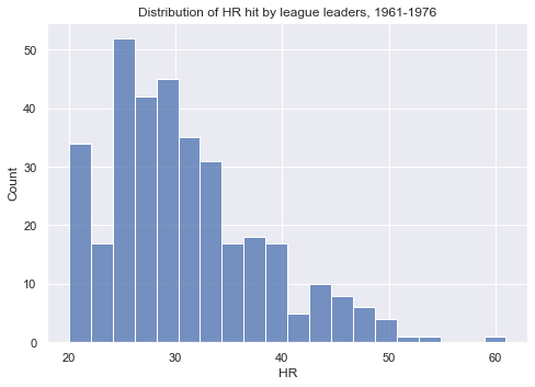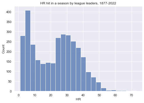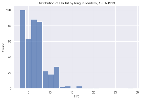 The most common bin for league leaders in home runs to occupy is in the 5 home run range. It makes sense why these guys can’t, at face value, be compared to Barry Bonds’ 73. We will, however, identify era-specific single season HR kings, and show these players’ performances relative to other players in their respective eras: